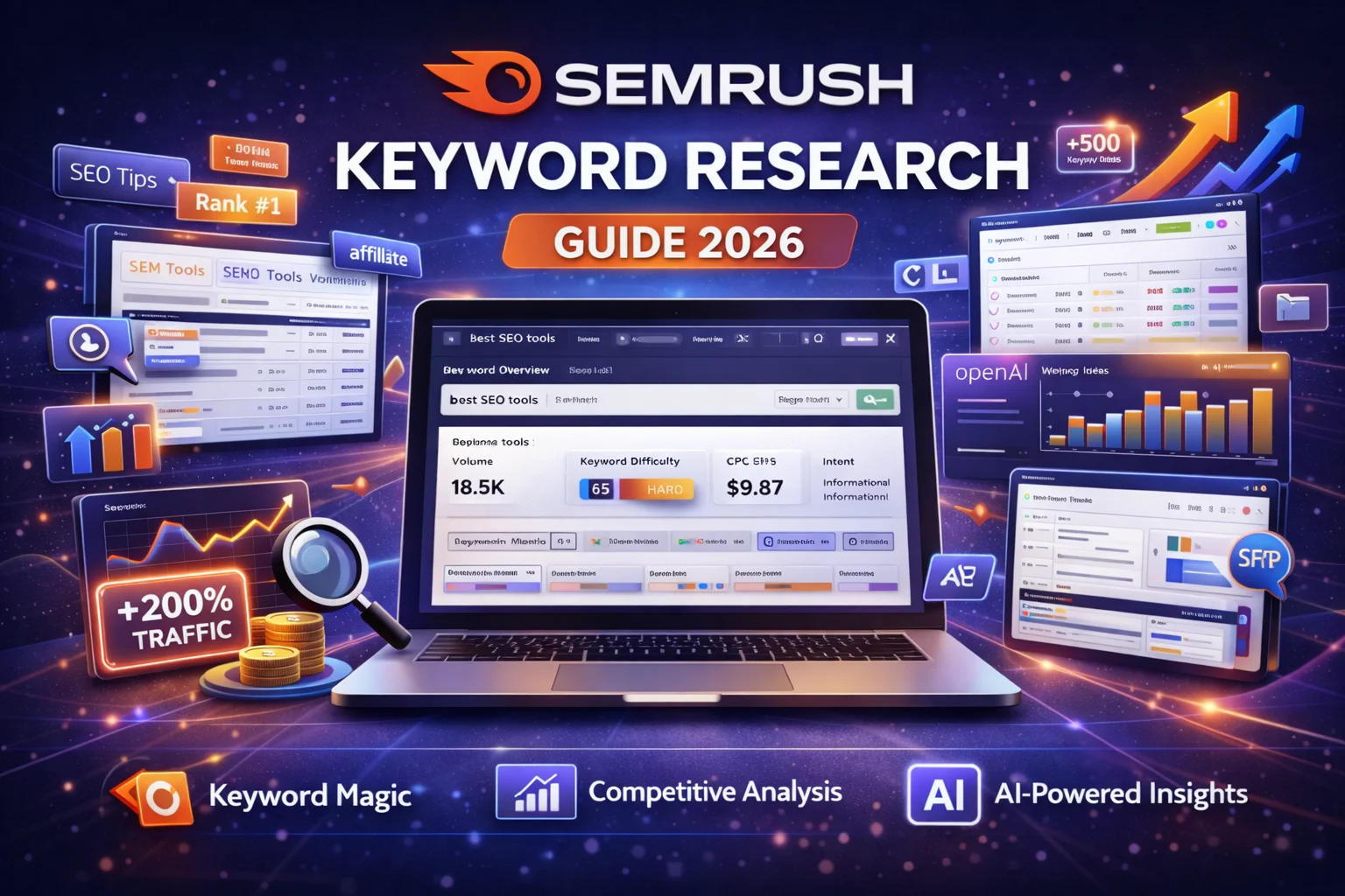 In this beginner-friendly guide, you will learn how to use Semrush for keyword research step-by-step. The tutorial covers everything from finding keyword ideas to analyzing search intent and building a content strategy that aligns with modern search engine ranking factors in 2026.